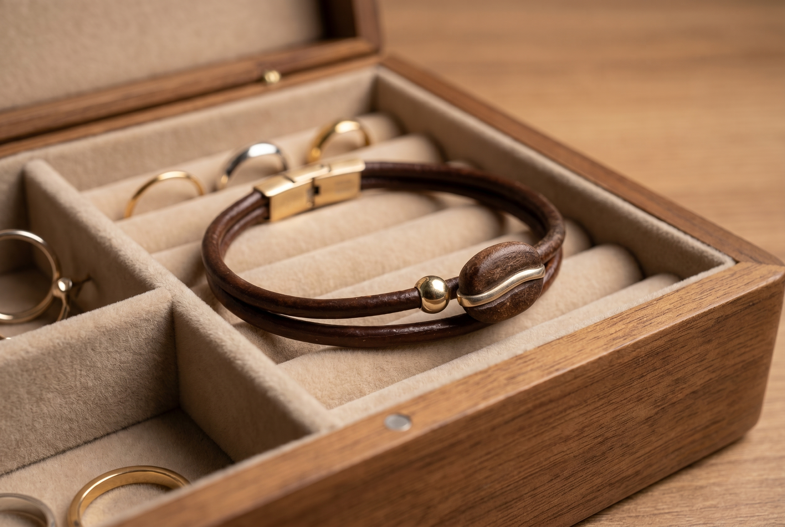 Hay encuentros que nacen para brillar. Nuestra Pulsera de 1 Grano con Línea en Plata es el equilibrio perfecto entre la sofisticación del metal precioso y la esencia orgánica de nuestra tierra. Un solo grano, moldeado con borra de café, es atravesado por una sutil línea de plata que resalta su forma y su historia.